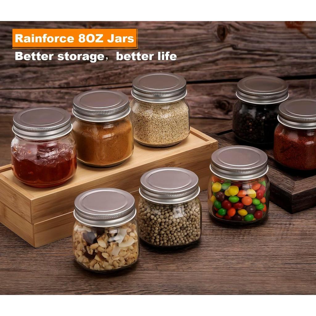 Банки Мейсона 8 унций - Маленькие банки Мейсона с серебряными крышками - 1/4 кварты Консервные банки| Стеклянные банки для хранения с крышками для желе, джема, меда, солений
