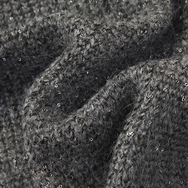 Женский короткий вязаный кардиган с V-образным вырезом и блестящими пайетками