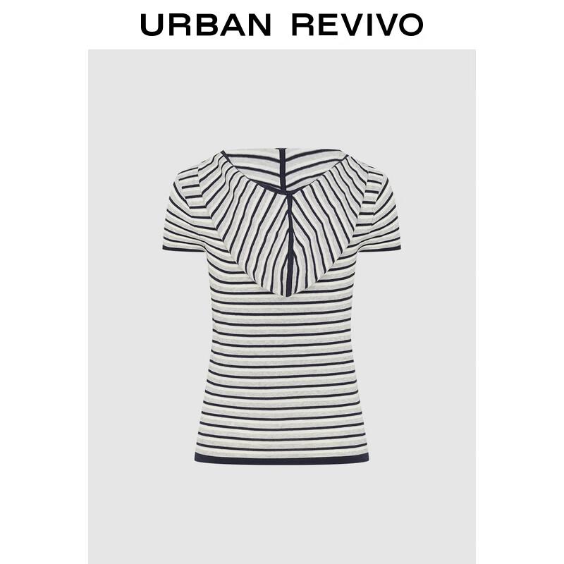 Женский полосатый трикотажный топ с капюшоном и короткими рукавами