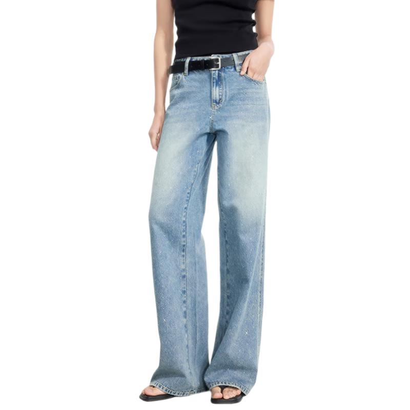 JINYUJIE Women's Loose Wide-Leg Mid-Waist Jeans