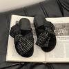 Ретро дизайн джинсовые клетчатые баотоу полушлепанцы с бантом женские 2025 лето новые милые ленивые сандалии
