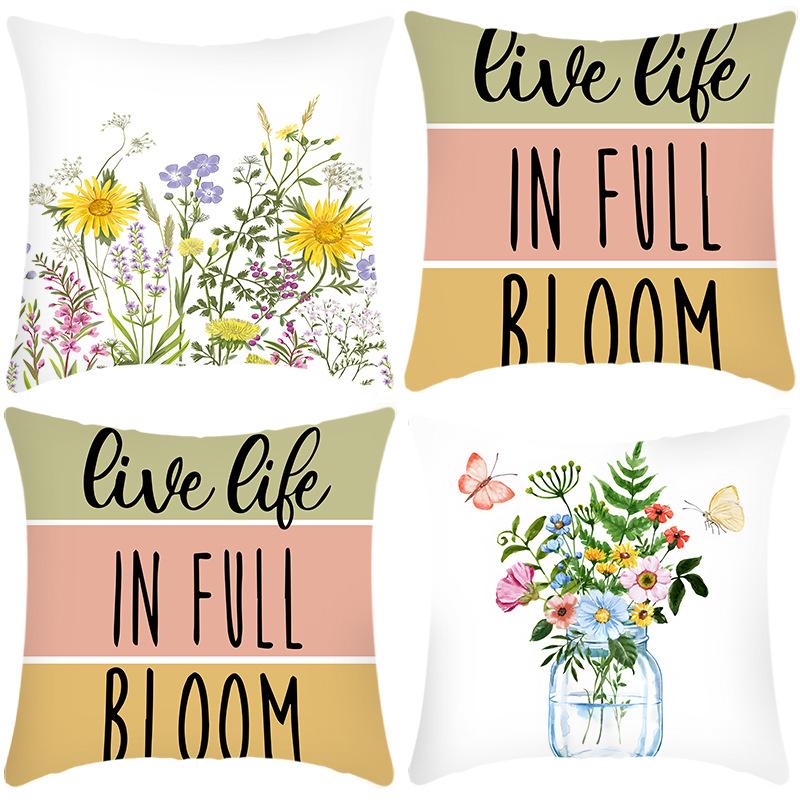 Fashionable Spring Flower Spring Elements Pillow Cover Linen Flower Cushion Pillow Cover