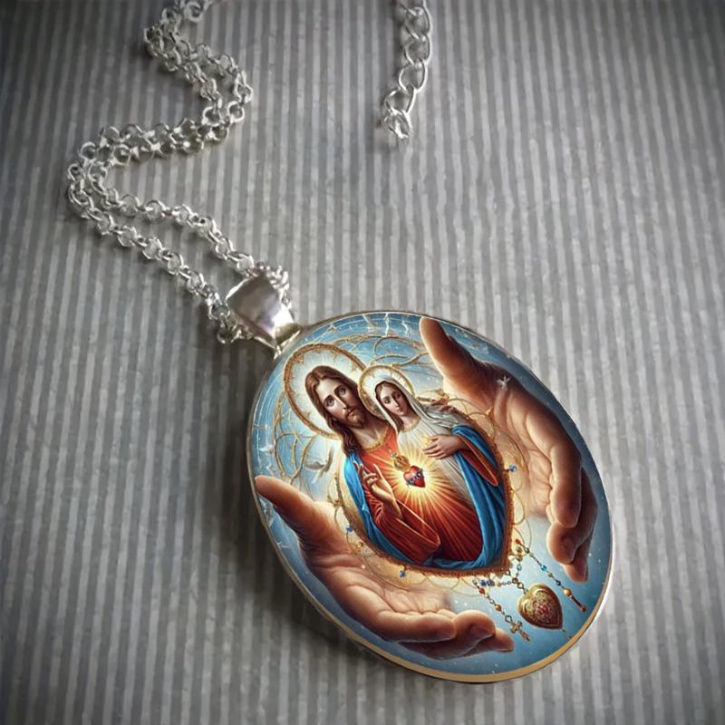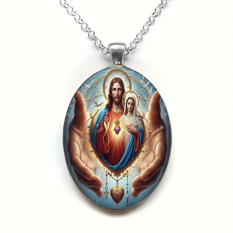 Христианское ожерелье-подвеска «Иисус и Дева Мария», подходит как мужчинам, так и женщинам, изготовлено из состаренного драгоценного стекла.