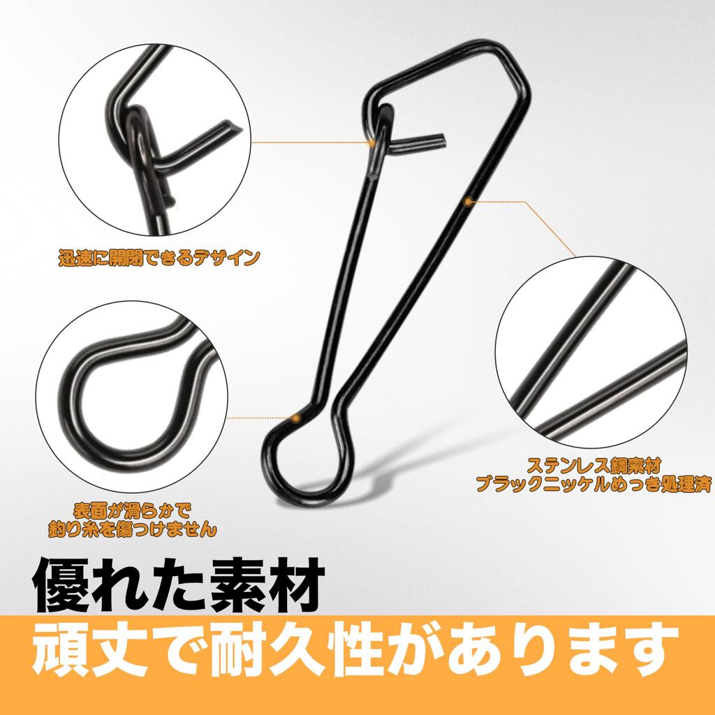 Рыболовные застежки Piscorush Quick Snap Нержавеющая сталь Черный Набор 100 шт. Сталь, Для рыбалки и лески Подходит для ловли кальмара, синего луциана и ставриды
