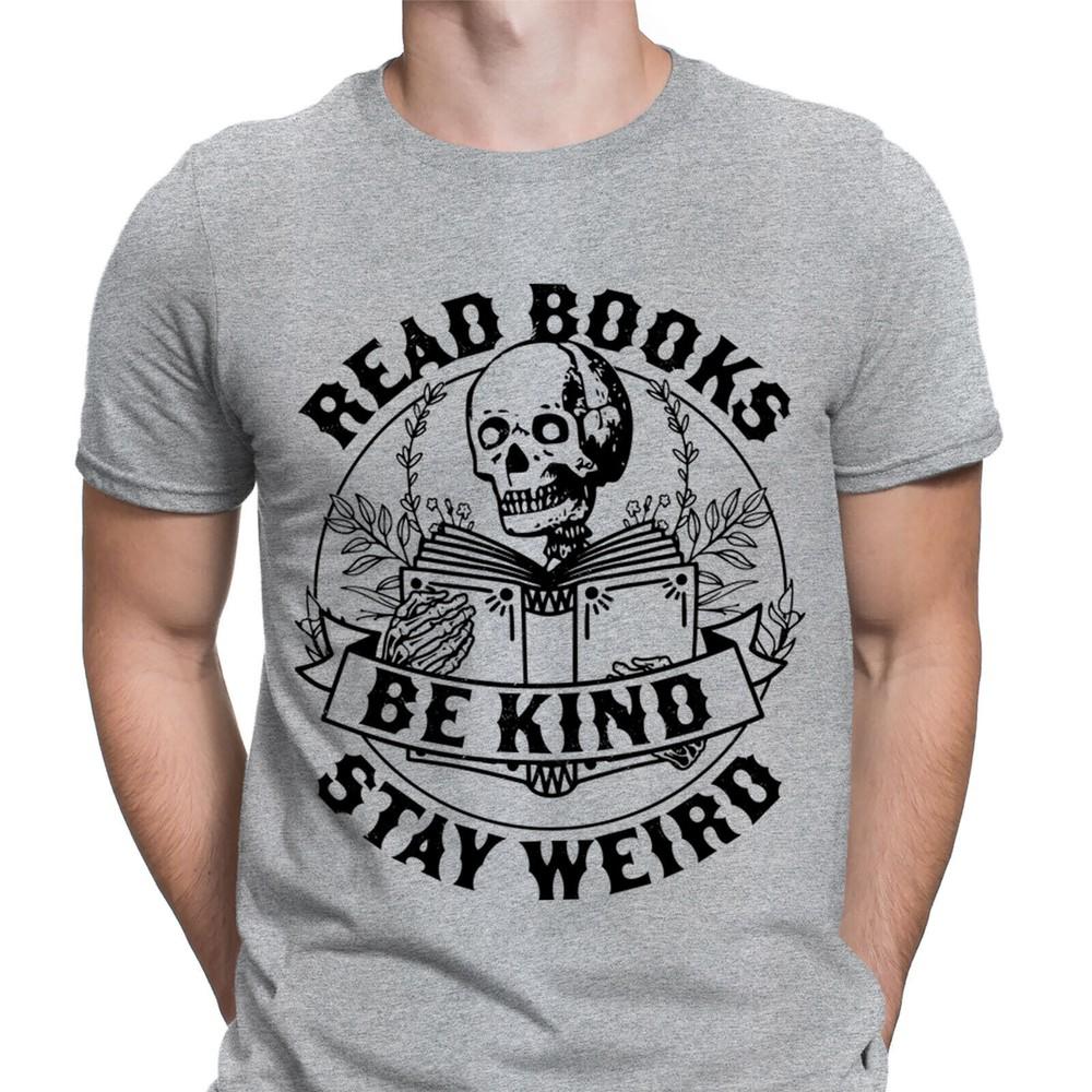 Читай Книги Будь Добрым Оставайся Странным Скелет Читающий Книгу Книжный Мужские Футболки Топ D6