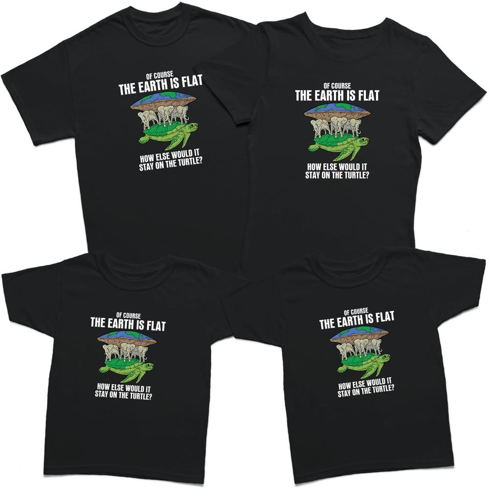 Конечно, Земля плоская Мужская футболка Смешной слон черепаха Детская футболка Топ