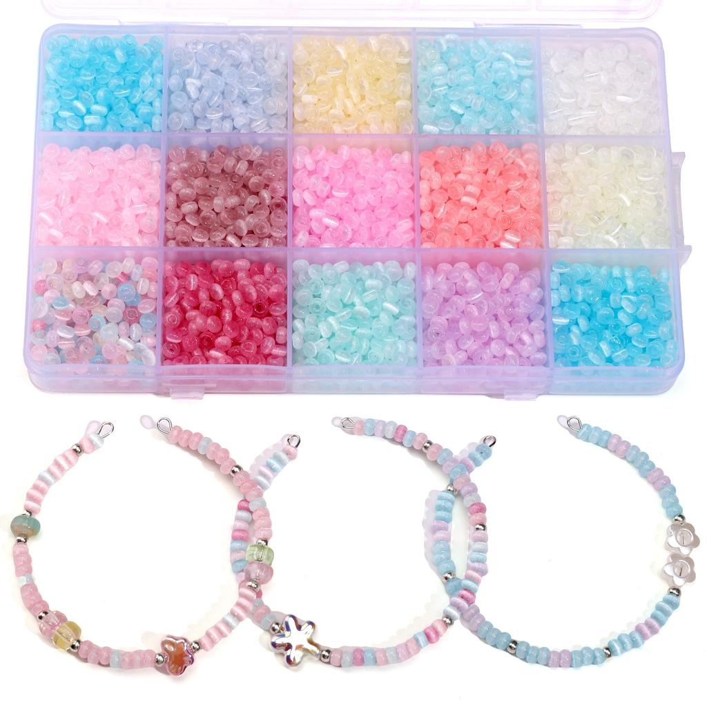 Стеклянные бусины «Кошачий глаз» для изготовления украшений своими руками с компонентами для браслетов и ожерелий в пластиковом органайзере - 90 штук, разные цвета