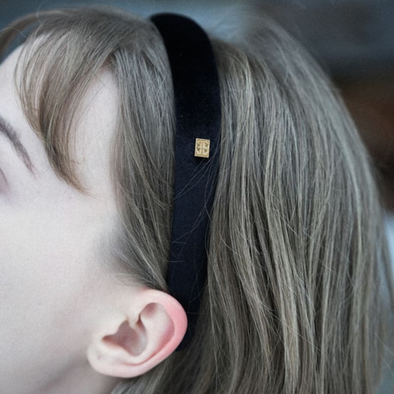 ФОЛНУА КВАДРАТНЫЙ ЛОГОТИП ВЕЛЮРОВАЯ ПОВЯЗКА ДЛЯ ВОЛОС (2CM) [черный]