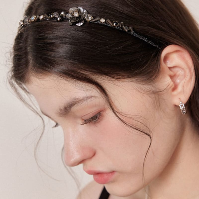 J.Lauren Цветок Черный Кубический Острие Роскошная Повязка для Волос H01274