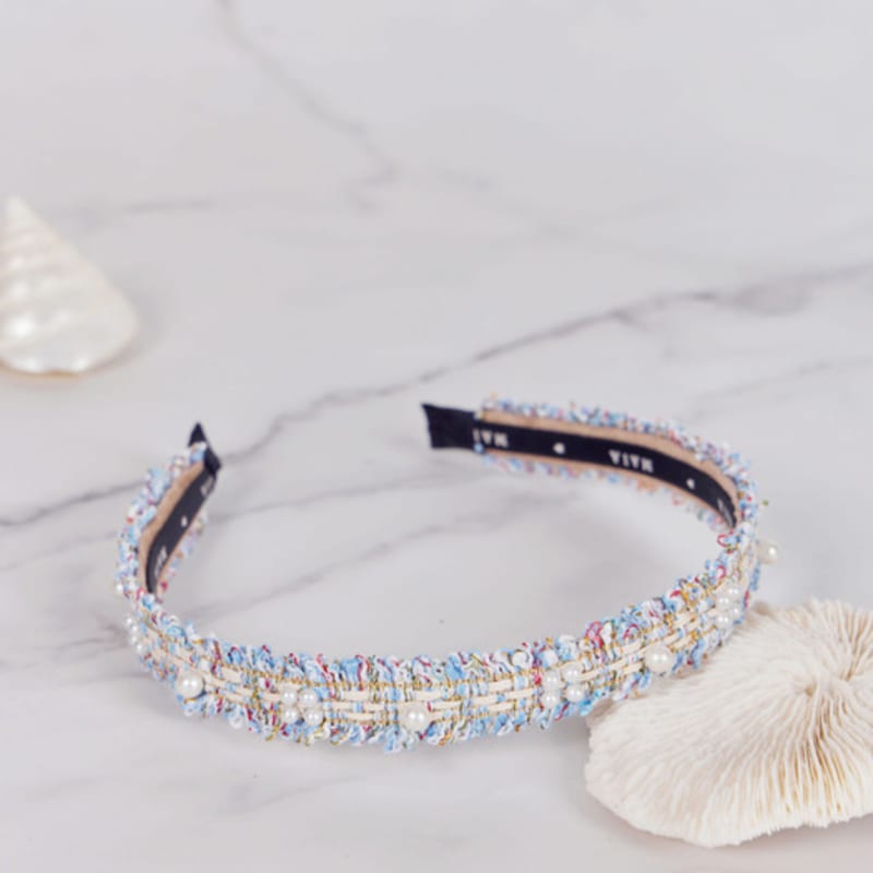 МАЙЯ Твидовая повязка на голову с жемчугом P - Синяя