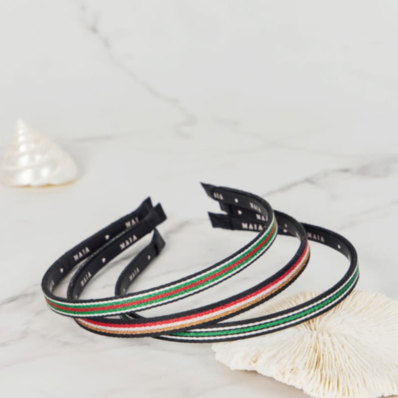 Полосатые повязки на голову MAIA (Выберите 2) - Зеленый, Серебристо-красный, Черный