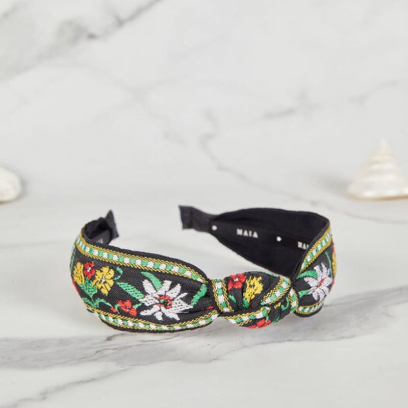МАЙЯ Зеленый Цветочный Жаккардовый Ободок для Волос - Завязанный Желто-Зеленый