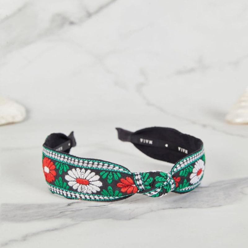 МАЙЯ Зеленая Цветочная Жаккардовая Повязка для Волос - Узел D Зеленый