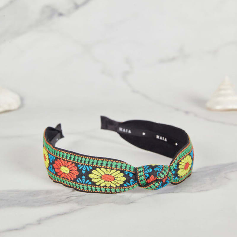MAIA Зеленая Цветочная Жаккардовая Повязка для Волос - Узловатая Оранжево-Зеленая — купить товар онлайн с бесплатной доставкой по всему миру!