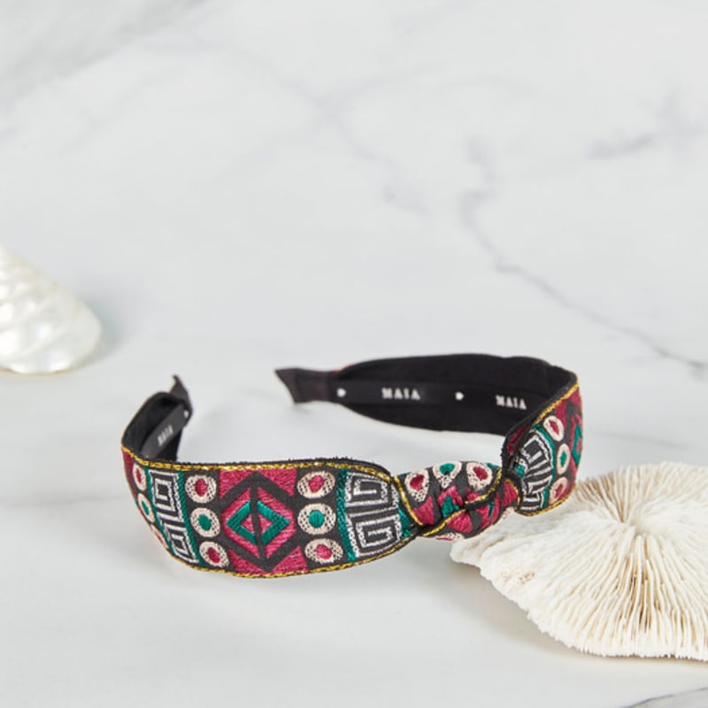 MAIA Жаккардовая повязка для волос с жемчужным цветком A - Узловая фиолетовая