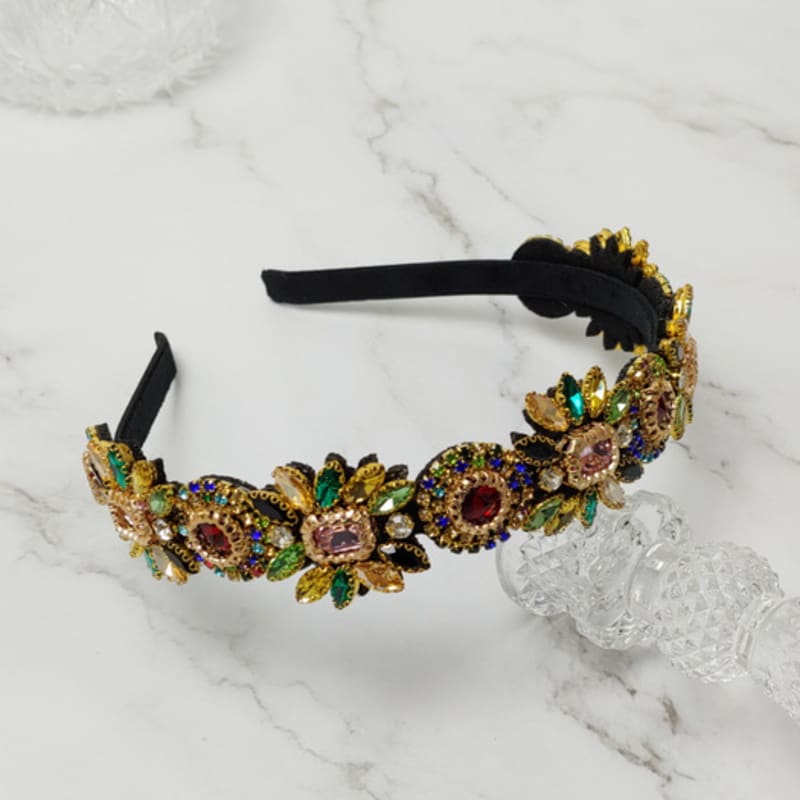 LALA Повязка для волос с цветком из драгоценных камней - Черный — купить товар онлайн с бесплатной доставкой по всему миру!