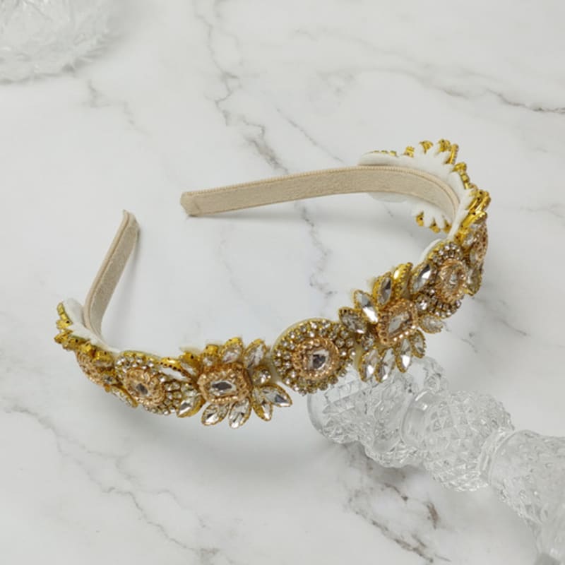 ЛАЛА Повязка для волос с цветком из драгоценных камней - Слоновая кость — купить товар онлайн с бесплатной доставкой по всему миру!