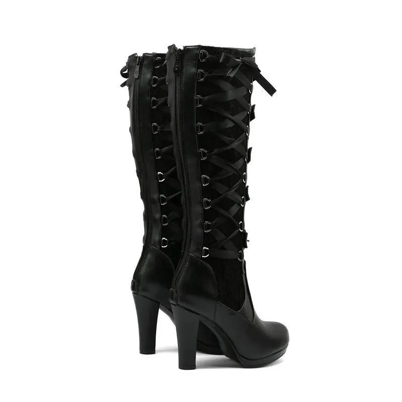 Винтажные панк-ботинки для женщин на осень-зиму Новый стиль толстый каблук супер высокий каблук универсальные круглый носок пряжка на ремне высокие сапоги