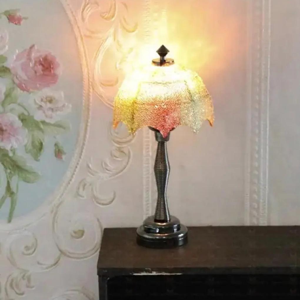 1/12 Светодиодная настольная лампа для кукольного домика Сделай сам Мини Готическая настольная лампа Сделай сам Теплый белый светодиодный настенный светильник Украшение кукольного домика Модель для демонстрации