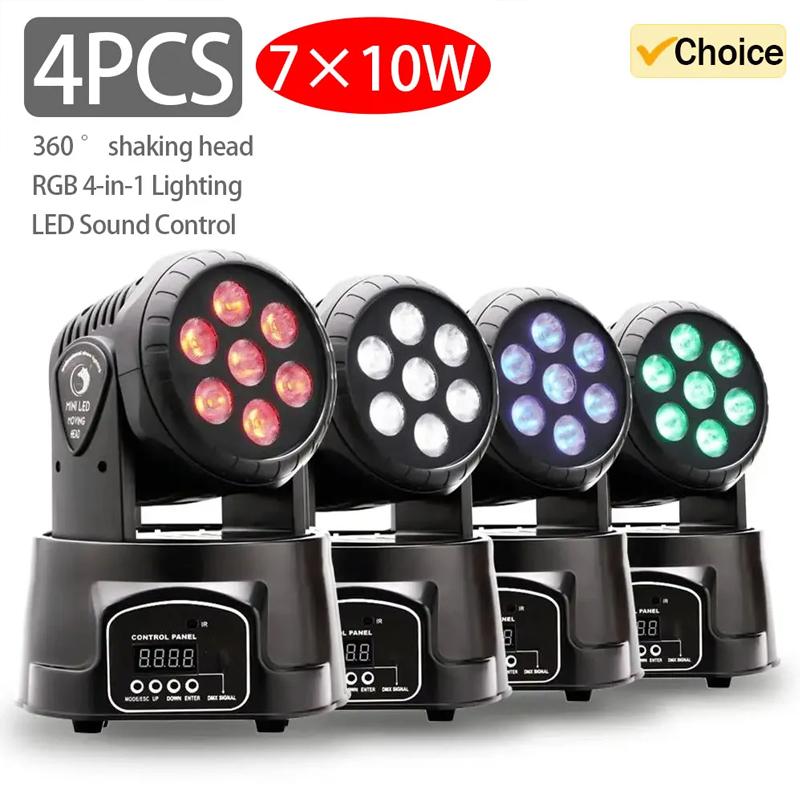 1/4 шт. Световые приборы с движущейся головой для сцены 7x10 Вт RGB Диско DMX Лазерный бар Вечеринка Танцы День рождения Свадьба Рождество эффект Лампа Управление звуком