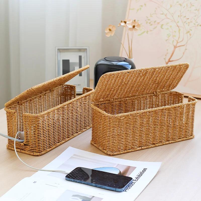 Органайзер для проводов под столом, Ручная работа, Коробка для укладки кабелей, Прочный ротанговый органайзер для кабелей, 2 открытых слота, Коробка для скрытия проводов,
