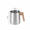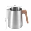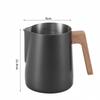 Питчер для вспенивания молока из нержавеющей стали 304 с точной шкалой, ручкой с текстурой дерева против ожогов, профессиональная кофейная посуда