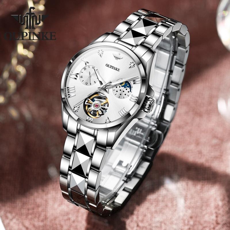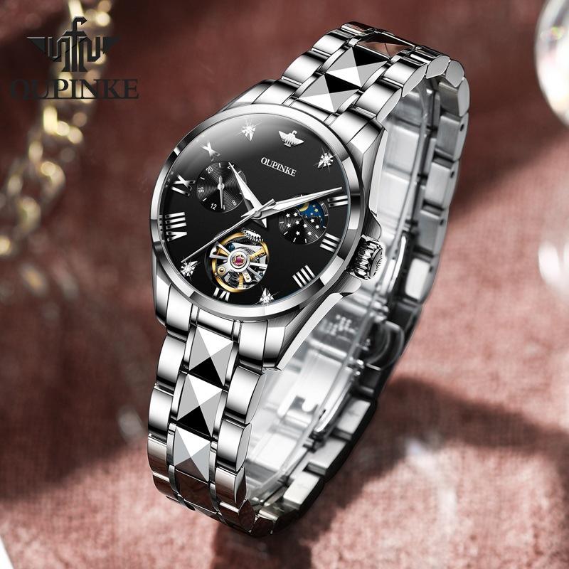 OUPINKE Водонепроницаемые автоматические механические часы с фазой Луны и турбийоном, женские часы, женские часы