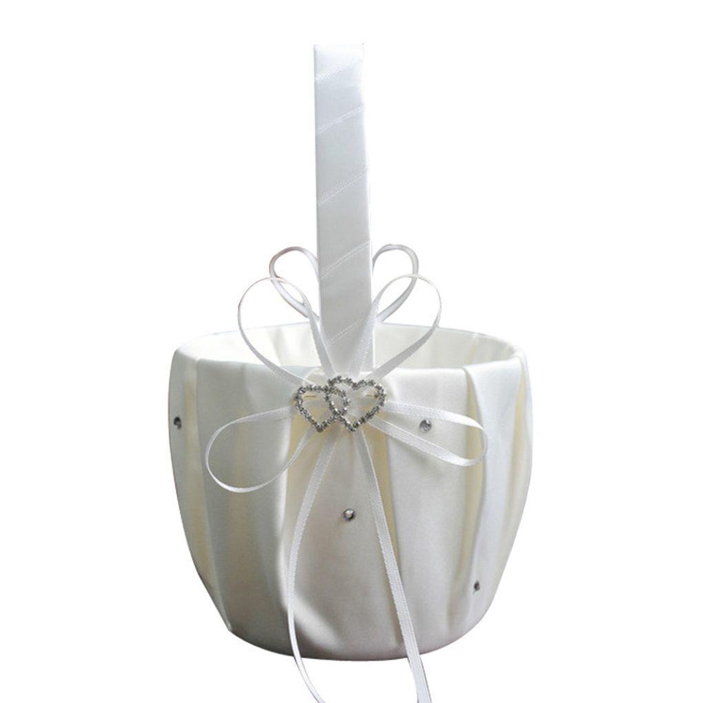 Белая корзина для девочек с цветами, простая свадебная корзина с жемчугом для цветов, ручная для невесты/детей, украшения для свадебной церемонии/вечеринки