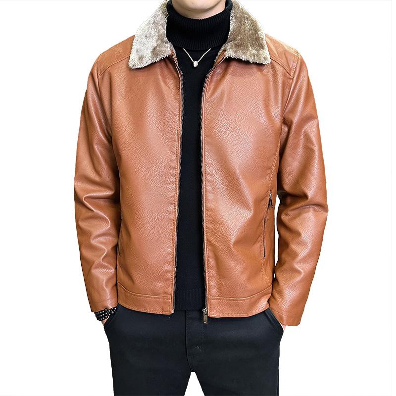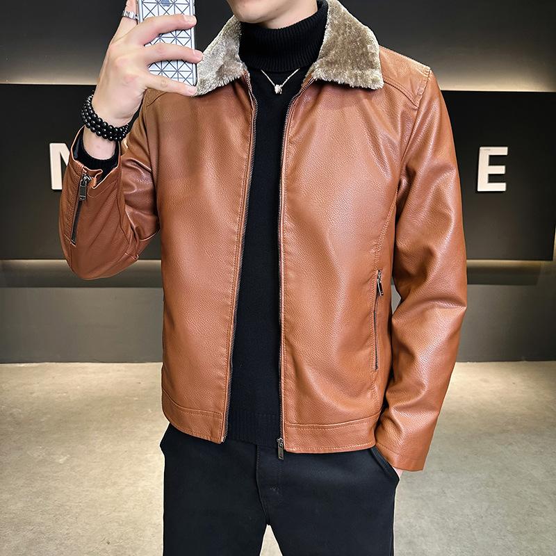 Плюшевая кожаная куртка, мужская куртка из искусственной кожи, осенне-зимняя корейская версия, деловая куртка с лацканами