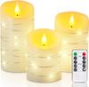 Светодиодная свеча без пламени, со встроенной гирляндой из звезд, набор из 3 светодиодных свечей, с таймером и пультом дистанционного управления для Рождества, свадьбы, вечеринки