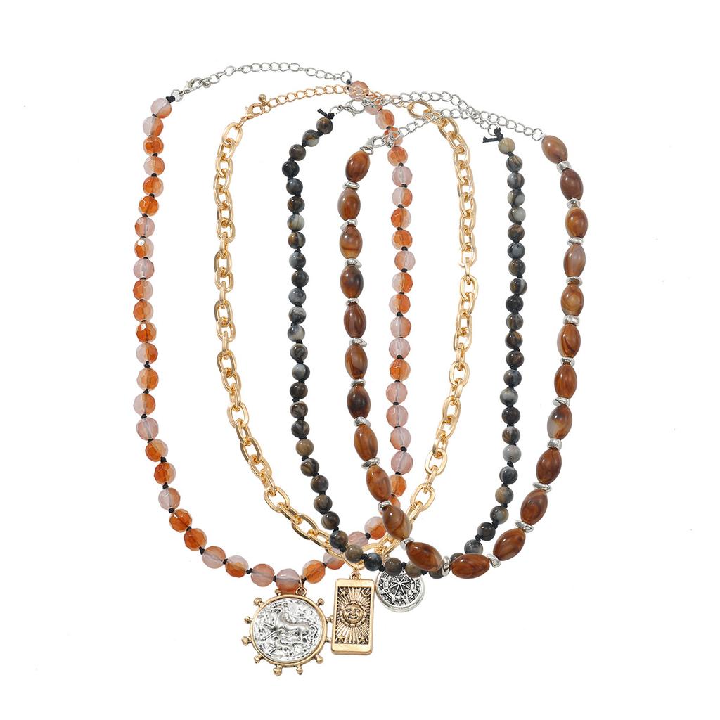 Многослойное ожерелье из сплава с бусинами, пляжная цепочка на ключицу
