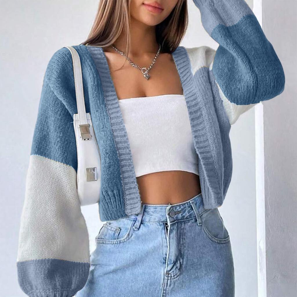 Женский универсальный трикотажный свитер-жакет с цветными блоками, повседневный, в полоску, с длинным рукавом