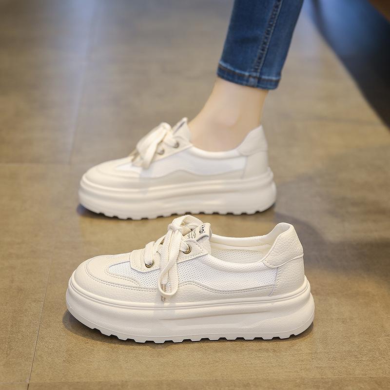 Кожаные дышащие туфли на толстой подошве, маленькие белые туфли интернет-знаменитости, женские летние новинки 2025 года, универсальная удобная спортивная и повседневная обувь на мягкой подошве — купить товар онлайн с бесплатной доставкой по всему миру!