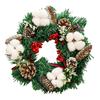 Окунитесь в дух Рождества с нашим рождественским венком «Merry Christmas», выполненным в ярких зеленых тонах и украшенным реалистичными искусственными сосновыми шишками для придания ему живого вида.