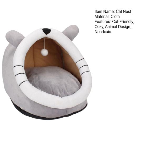 Представляем милую и забавную кошачью лежанку. Эта очаровательная лежанка для кошки с дизайном животного имеет два больших висячих уха и подвесной игрушечный мячик у входа для развлечения вашей кошки.. Изготовленное из прочного, нетоксичного, мягкого материала, кошачье отверстие спроектировано с учетом привычек вашего кошачьего друга.. Благодаря специальному трехмерному крою и шитью, кошачий лаз сохраняет свою форму, предлагая достаточно места для активности и обеспечивая уютную закрытую среду.