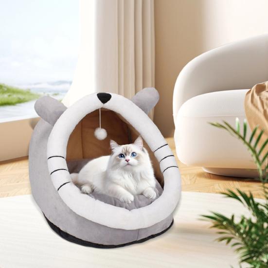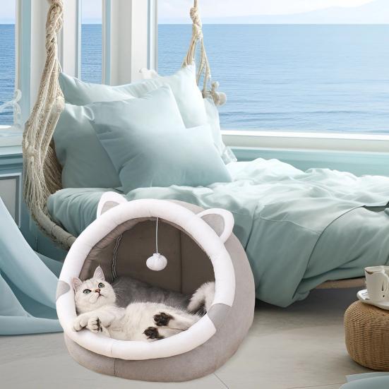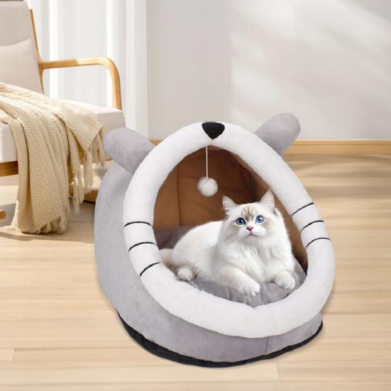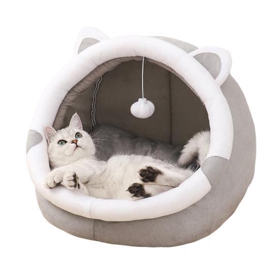 С учетом кошачьих привычек: Учитывая любовь кошек прятаться в норах и искать темноту для комфорта, эта пещера-кровать для кошек минимизирует световую стимуляцию, способствуя лучшему сну и чувству безопасности.. Идеально для нервных или тревожных кошек, дизайн поощряет естественное поведение, обеспечивая безопасное убежище для отдыха и игр.