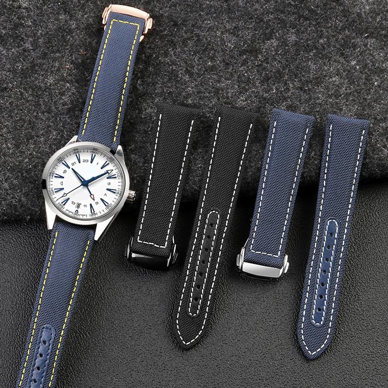 19мм 20мм Тканый холщовый ремешок для часов для Omega Seamaster 300 AT150 Ткань Кожа Нейлон AQUA TERRA 150 Синий Черный Ремешок для часов