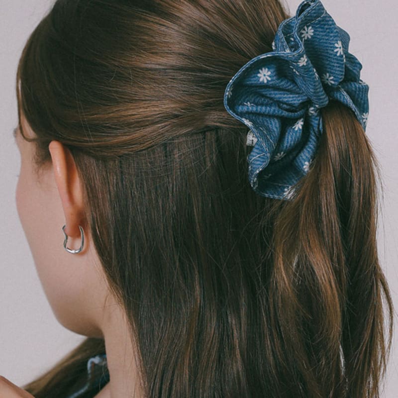 Дж.Лорен Джинсовая резинка для волос с цветком H01356