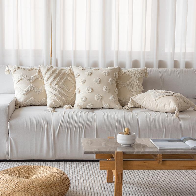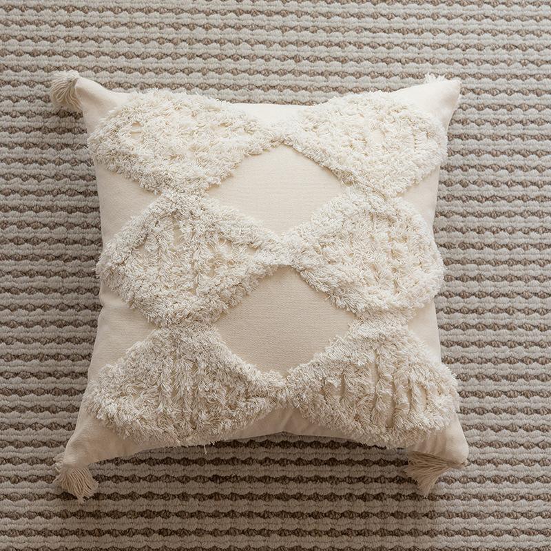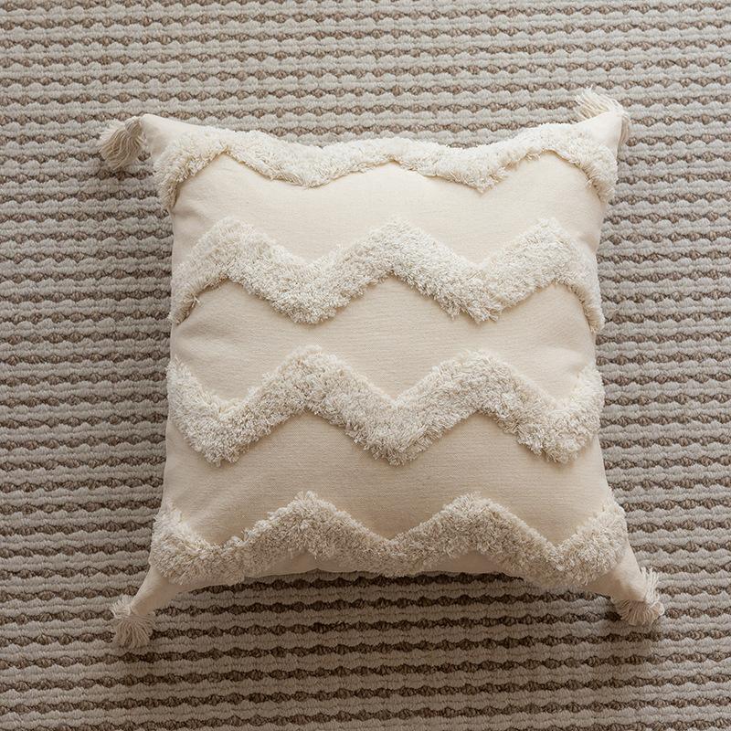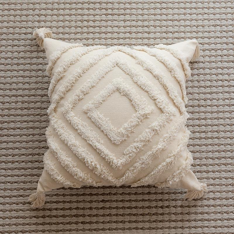 Богемная наволочка с кисточками, трехмерная стеганая вышитая наволочка для диванной подушки, геометрическая линия, декоративная однотонная подушка