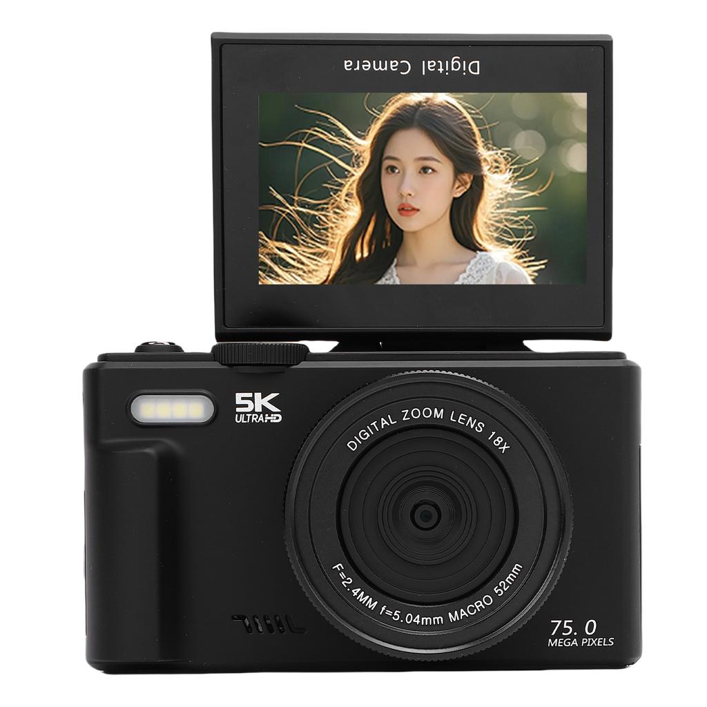 1. High Resolution Photography, Flash: The 5K 75MP digital camera excels in photography, offering video resolution of 5120x2880 and image resolution of 9248x6936. With an integrated flash, you can take photos even in low light conditions