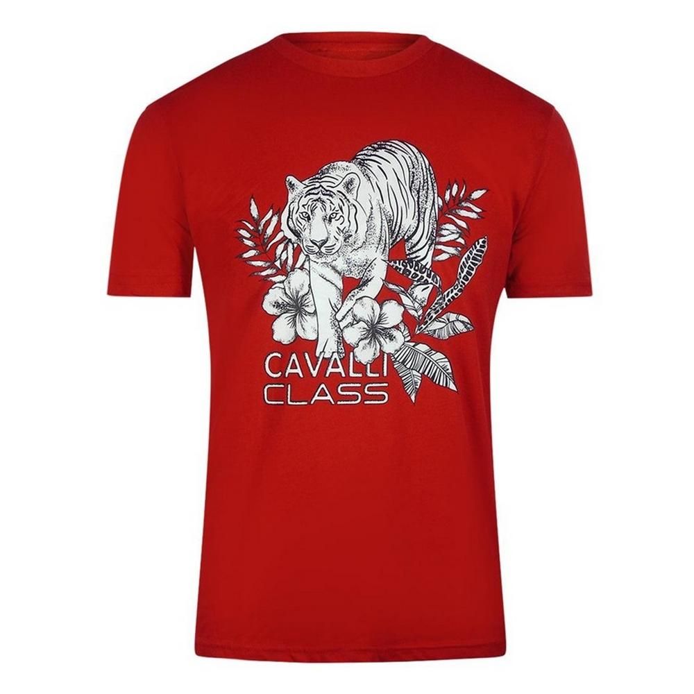 Cavalli Class Unisex Adult Floral Tiger Logo T-Shirt