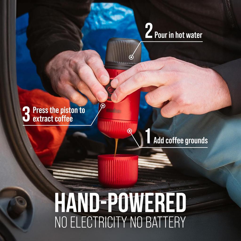 Authentic WACACO Nanopresso Portable Espresso Upgraded Version of the Manual Maximum Pressure of 18 Compatible with Ground Extra Mini Travel Coffee