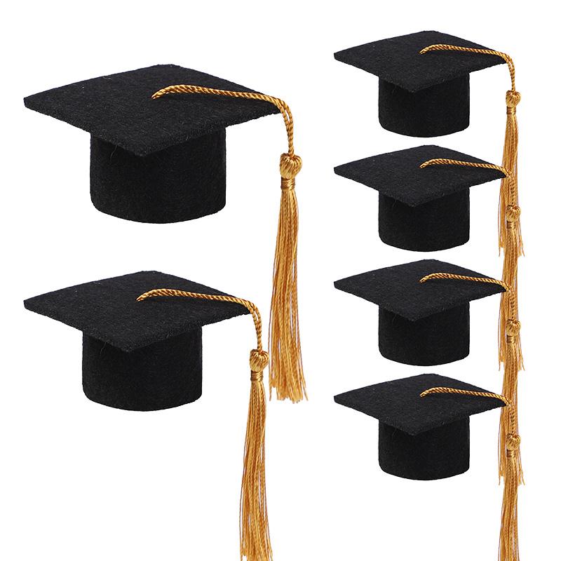 5/10 шт. Мини Выпускная Шапочка с Кисточкой Плюшевая Игрушка Чехол для Винной Бутылки DIY Подарок Украшение Фетровая Шапочка Бакалавра 2025 Выпускной Вечер