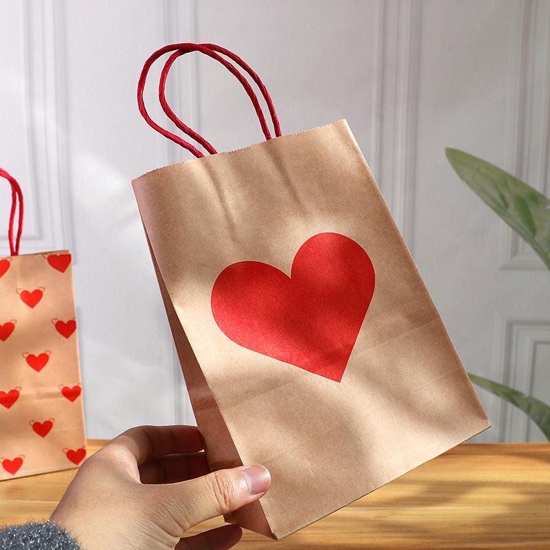 10 шт. Красная подарочная упаковка из крафт-бумаги в форме сердца для конфет с биркой, сумка-тоут для покупок на День святого Валентина, декор для свадебной вечеринки