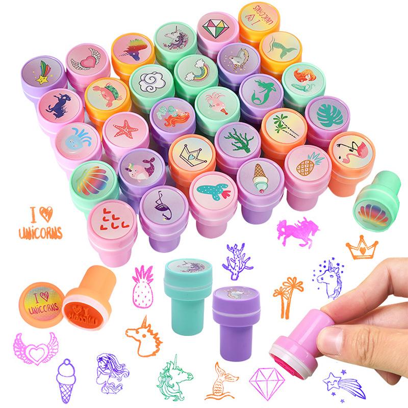 10 шт. Мультяшные самонаборные штампы Детские Русалка Единорог Сувениры для дня рождения Подарок Фламинго Гавайская вечеринка Декор Принадлежности Свадьба