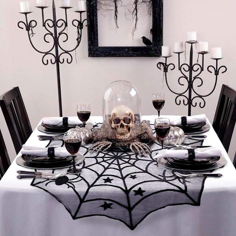 Украшение на Хэллоуин, кружево, паутина, скелет, скатерть с черепом, черный каминный шарф для камина, принадлежности для украшения вечеринки