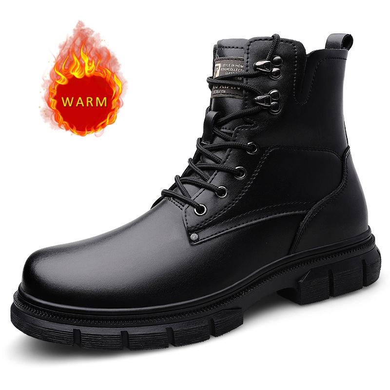 Мужские повседневные туфли из натуральной кожи, зимние высокие оксфорды, толстая подошва, флис, для работы, для походов, мужские ботильоны на шнуровке