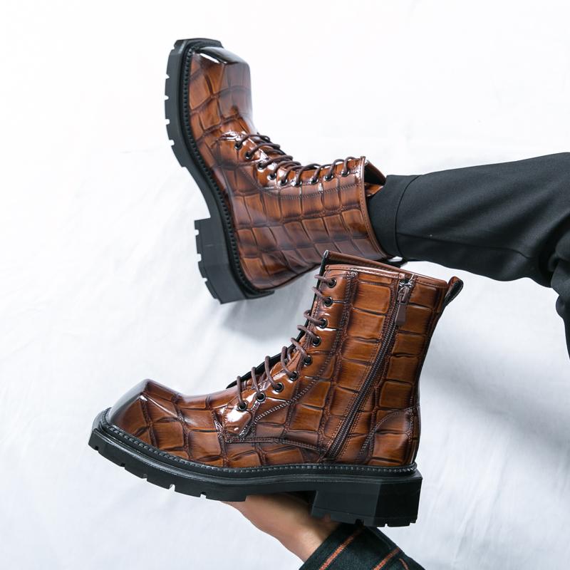 Мужские высокие ботинки на толстой подошве Ретро британский стиль Повседневная уличная ходьба Для офиса или бизнеса Осень и зима Обувь