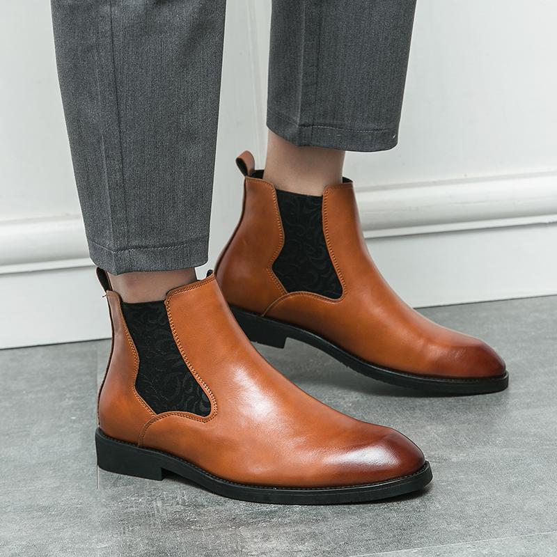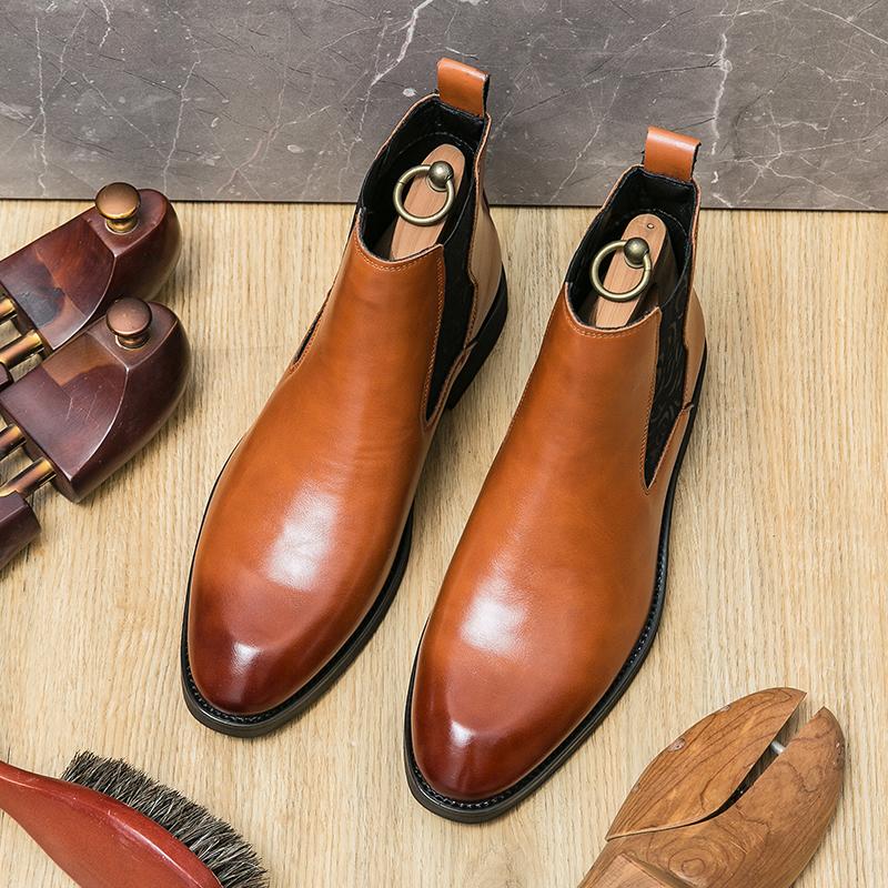 2025 Высококачественные мужские ботинки Стильная мужская обувь Толстая подошва Мужские повседневные ботинки Натуральная кожа Мужские туфли для свадебного платья