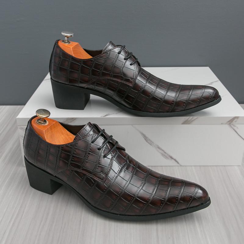Классические мужские туфли на высоком каблуке, формальные, на шнуровке, деловые, с заостренным носком, кожаные туфли, туфли для свадьбы и банкета в европейском стиле, мужские